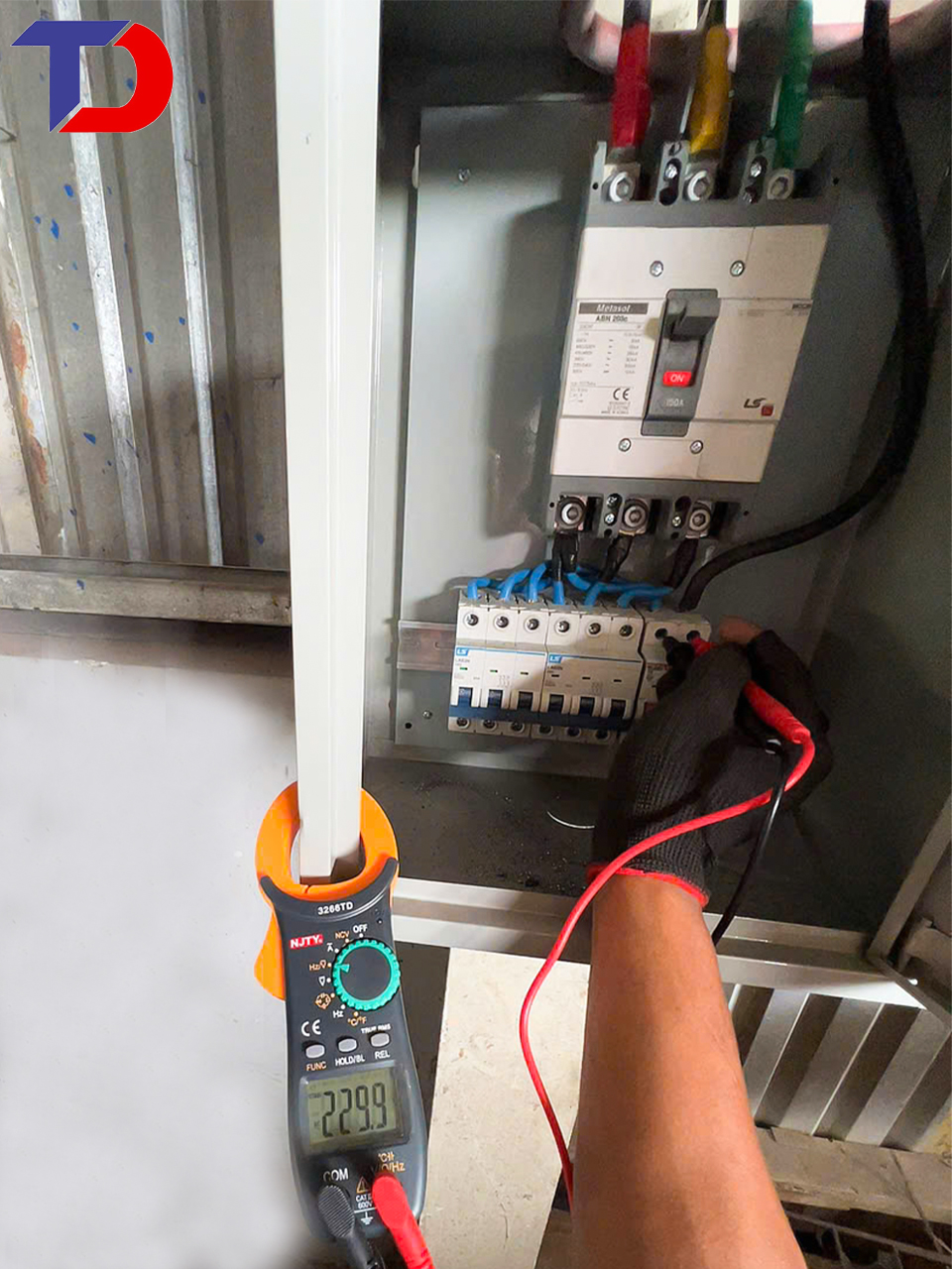 Kỹ sư Tâm Đức Tech đo kiểm tủ điện tổng