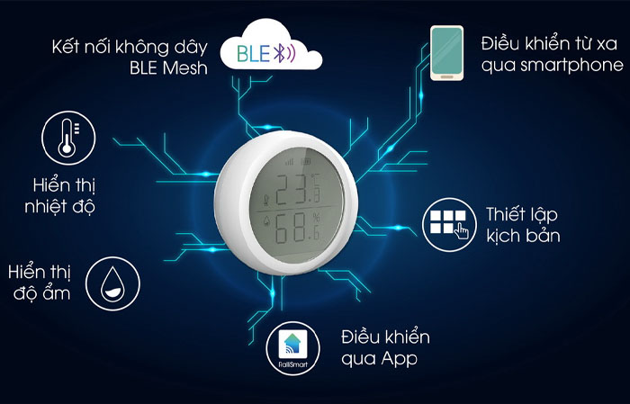 Giám sát và hiển thị theo thời gian thực nhiệt độ và độ ẩm không khí trong phòng.
