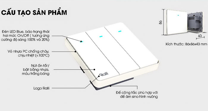 Sản phẩm có tuổi thọ cao, tiết kiệm năng lượng, được thiết kế sử dụng công nghệ kết nối không dây Bluetooth Mesh, giúp dễ dàng điều khiển nhà thông minh bằng smartphone qua Internet từ bất kỳ đâu, biến hệ thống điện trong nhà thành hệ thống thông minh.