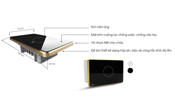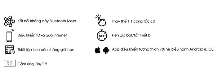 - Sản phẩm sử dụng công nghệ cảm ứng điện dung siêu nhạy và công nghệ kết nối Bluetooth Mesh không dây, hoạt động ổn định, không điểm nghẽn.