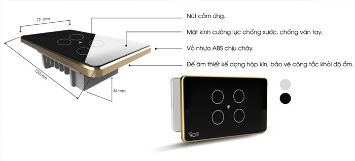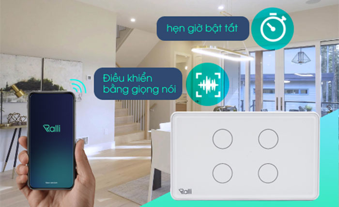 ►Với thiết kế sang trọng, được trang bị lớp kính cường lực vừa đảm bảo an toàn, chống trầy xước, chống bám vân tay vừa đảm tính thẩm mỹ. Sản phẩm biến ngôi nhà trở nên hiện đại và thông minh hơn, cho phép kết nối và quản lý hệ thống các thiết bị điện trong nhà, tại văn phòng công sở... thông qua App Rallismart.