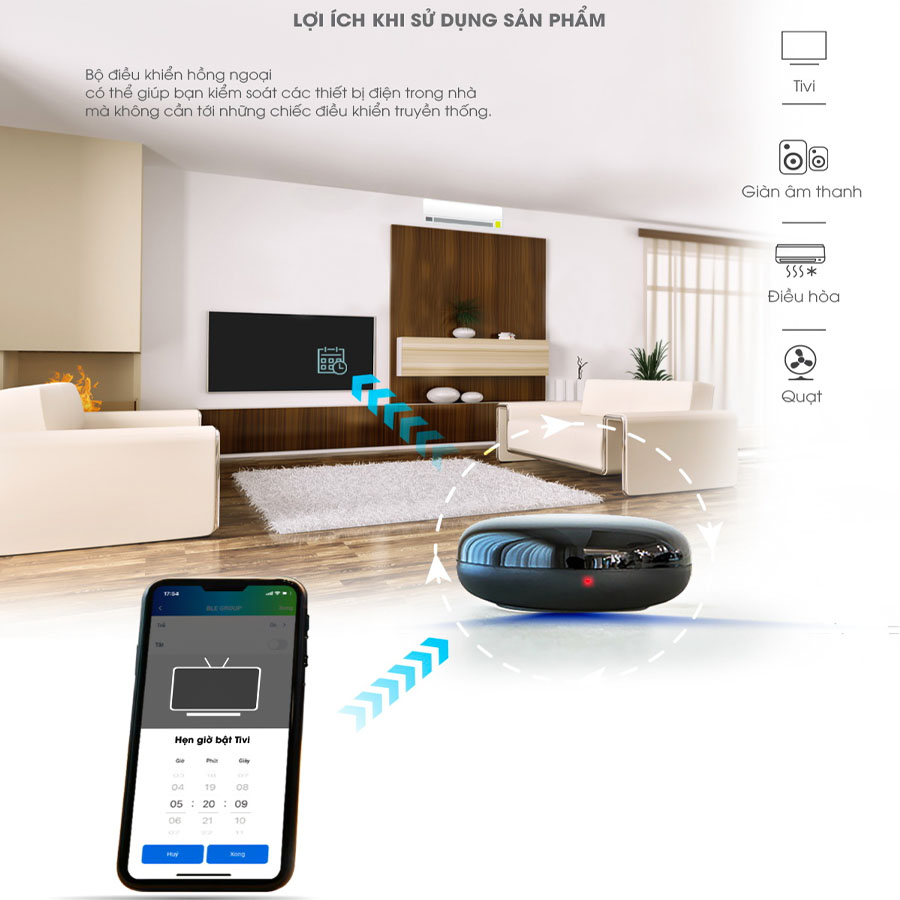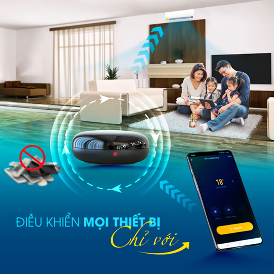 Với thiết kế nhỏ gọn và điều khiển số lượng thiết bị không giới hạn chính xác với góc phát 360 độ, không cần đi dây, giúp tiết kiệm không gian.