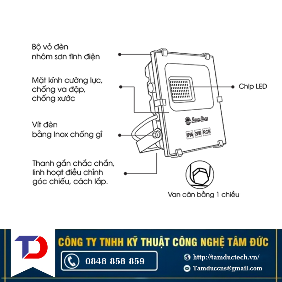 ► Liên hệ để được tư vấn và mua ngay Đèn pha 20W đổi màu Rạng Đông với giá ưu đãi tại TÂM ĐỨC TECH