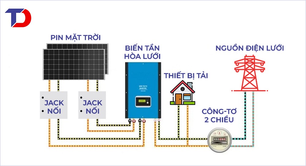 - Hệ thống điện mặt trời hòa lưới (On Grid) : kết nối với lưới điện quốc gia, tiết kiệm tối đa chi phí điện.