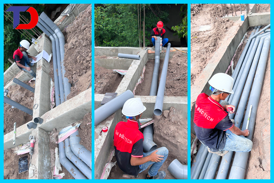 Kỹ sư Tâm Đức Tech thi công lắp đặt đường ống thoát nước