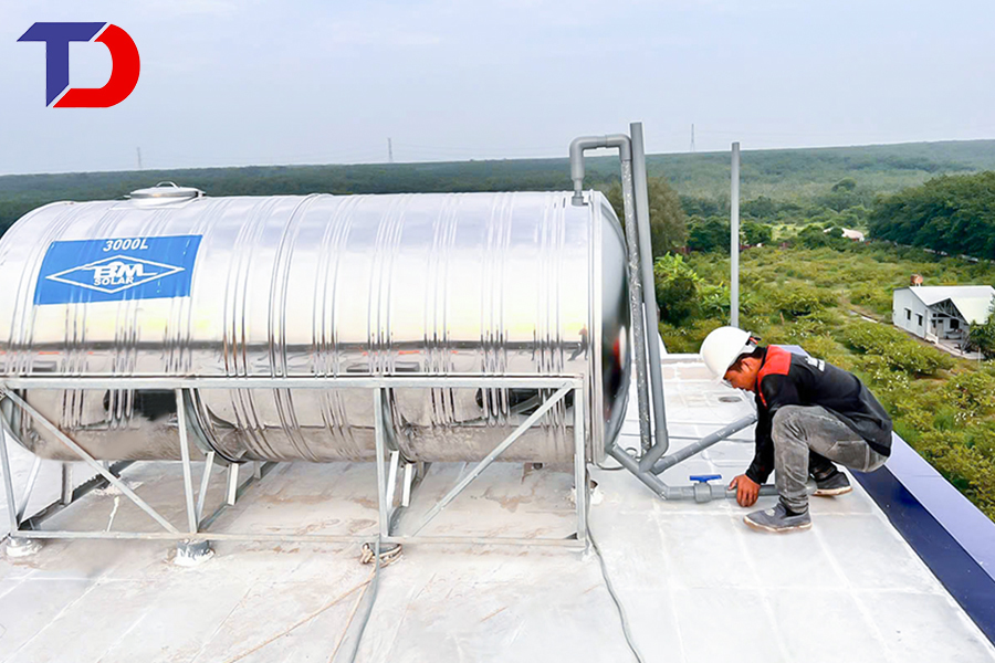 Kỹ sư Tâm Đức Tech thi công lắp đặt bồn nước trên mái nhà